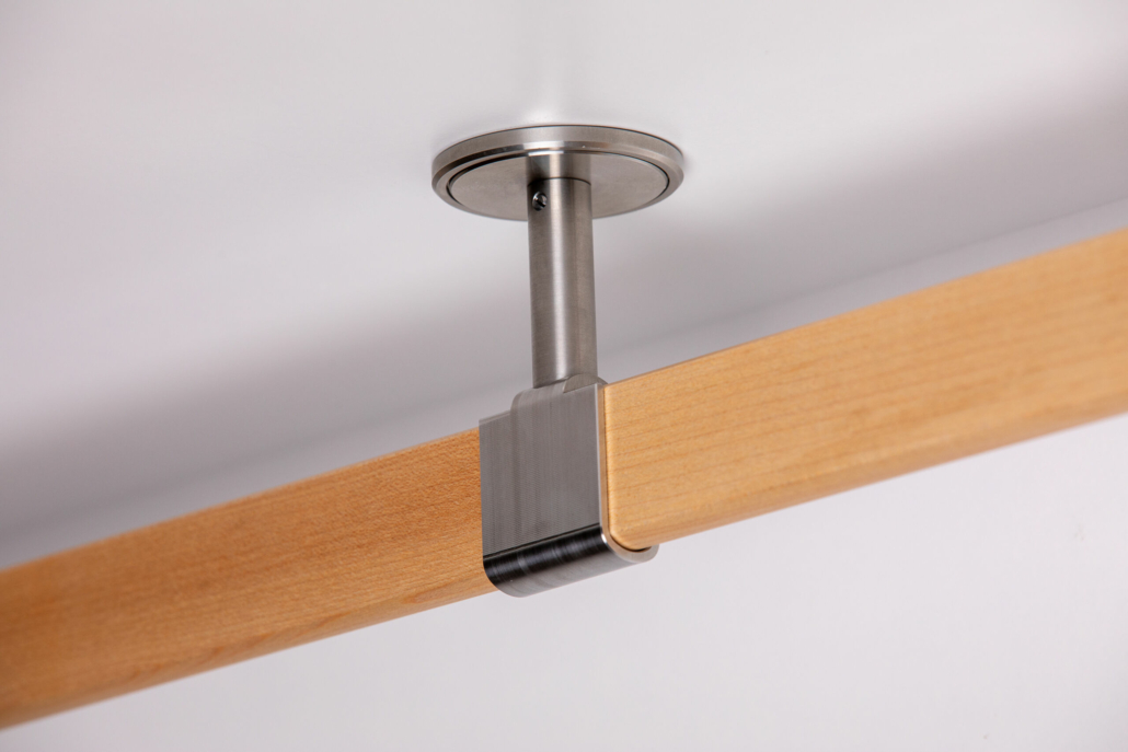 Auf Anfrage ist die Lieferung ohne Teilung der Holzstange mit einem dritten Standard Deckenhalter möglich.