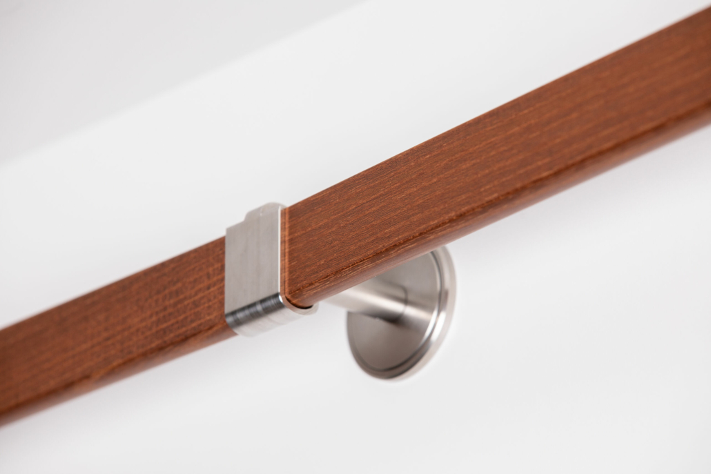 Ab einer Leistenlänge von 2100 mm ist die Holzstange in der Mitte geteilt und wird mit einem Mittelverbindungshalter (siehe Bild 4 und 5) geliefert. Dieser ist im Preis inklusive.