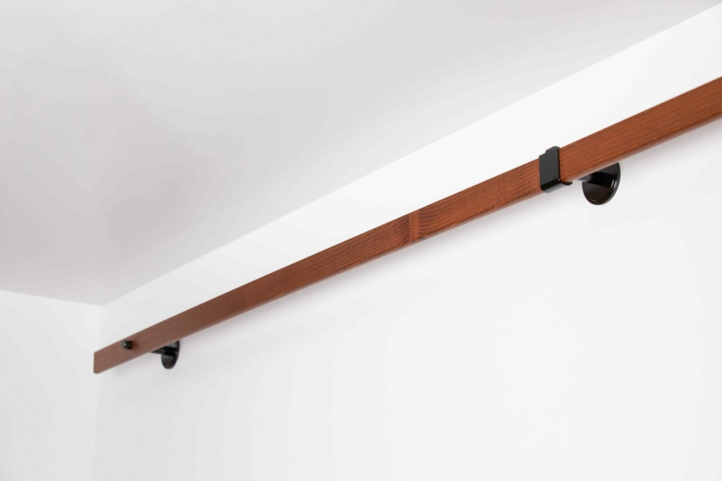 Ab einer Leistenlänge von 2100 mm ist die Holzstange in der Mitte geteilt und wird mit einem Mittelverbindungshalter (siehe Bild 4 und 5) geliefert. Dieser ist im Preis inklusive.