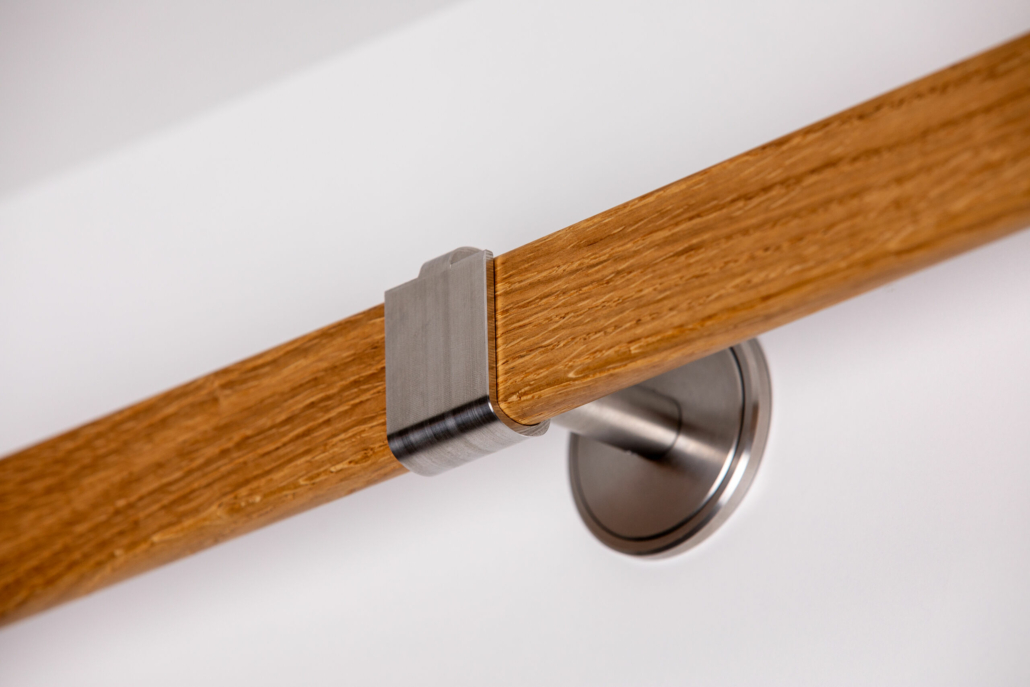 Ab einer Leistenlänge von 2100 mm ist die Holzstange in der Mitte geteilt und wird mit einem Mittelverbindungshalter (siehe Bild 4 und 5) geliefert. Dieser ist im Preis inklusive.