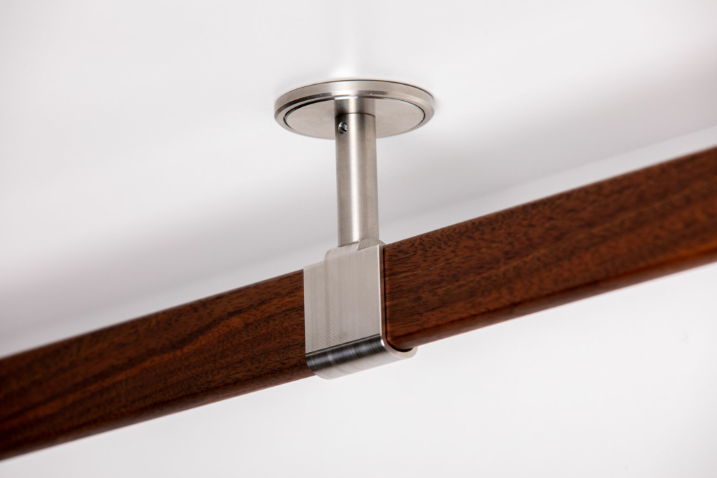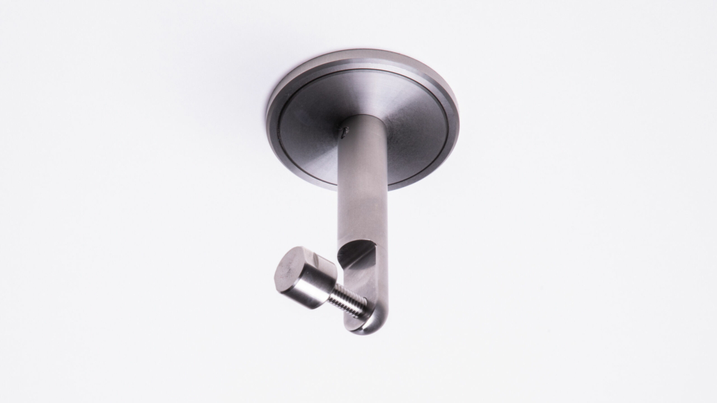 Inklusive 2 Deckenhalter in Edelstahl (CNC-Frästeile aus Vollmaterial Edelstahl V2A), Größe (s. Skizze) mit Befestigungsset.
