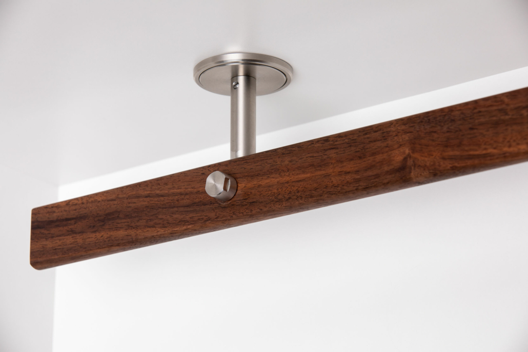 Auf Anfrage ist die Lieferung ohne Teilung der Holzstange mit einem dritten Standard Deckenhalter möglich.
