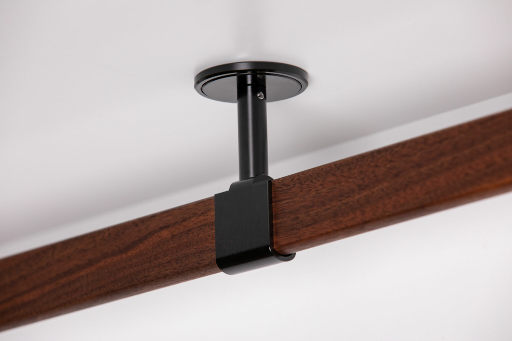 Inklusive 2 Deckenhalter in schwarz (CNC-Frästeile aus Vollmaterial schwarz V2A), Größe (s. Skizze) mit Befestigungsset.