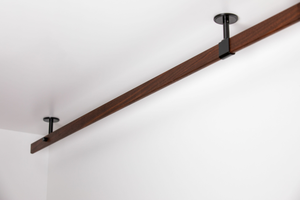 Einläufige Vorhangstange in Nussbaum (amerikanisch) inklusive 2 Deckenhalter...