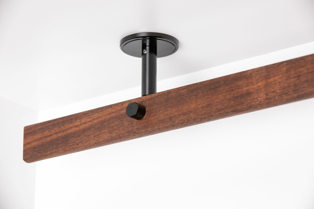 Auf Anfrage ist die Lieferung ohne Teilung der Holzstange mit einem dritten Standard Deckenhalter möglich.