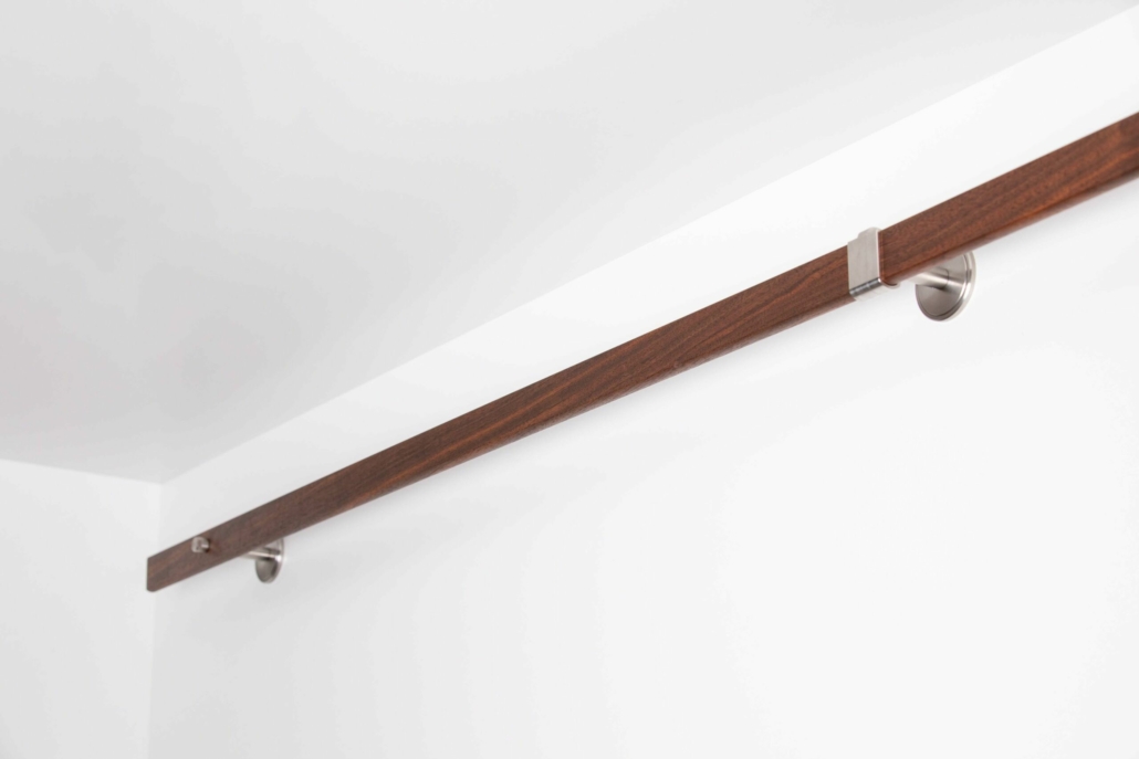 Auf Anfrage ist die Lieferung ohne Teilung der Holzstange mit einem dritten Standard Wandhalter möglich.
