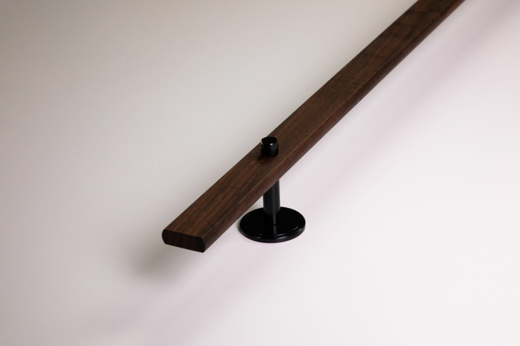 Maßgefertigte einläufige Vorhangstange aus Massivholz ca. 37 x 12 mm in Nussbaum (amerikanisch), oben und unten gerundet mit Radius 10 mm, Oberfläche geschliffen sowie naturgeölt.