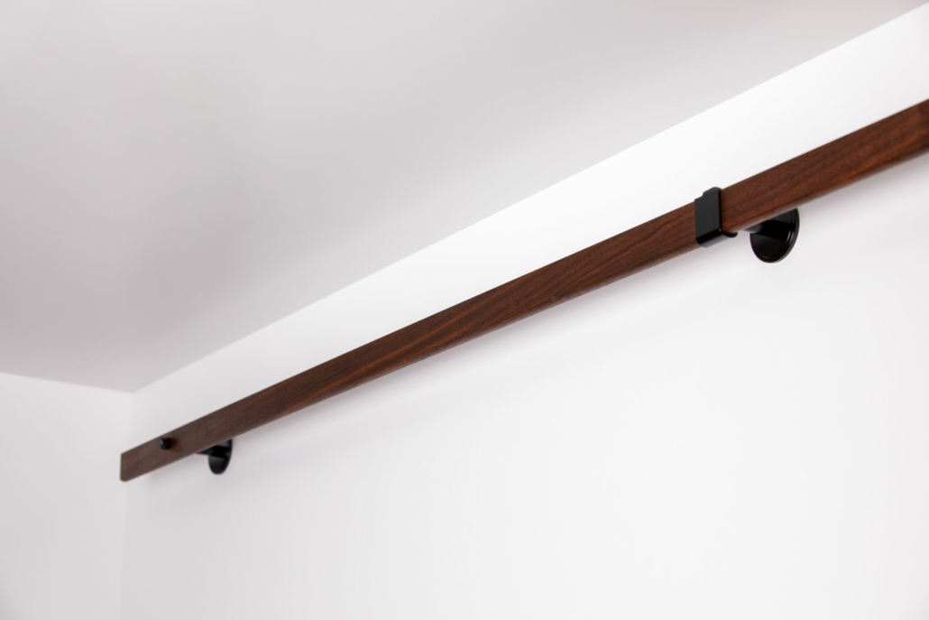 Auf Anfrage ist die Lieferung ohne Teilung der Holzstange mit einem dritten Standard Wandhalter möglich.