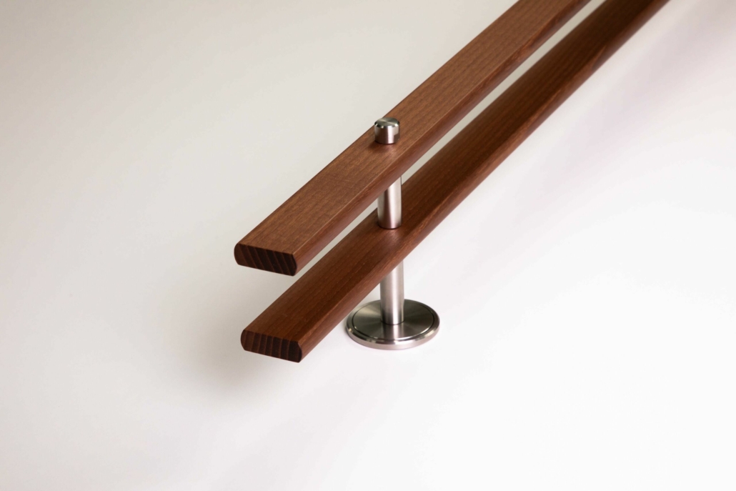 Maßgefertigte zweiläufige Vorhangstange aus Massivholz ca. 37 x 12 mm in Akazie (europäisch), oben und unten gerundet mit Radius 10 mm, Oberfläche geschliffen sowie naturgeölt.