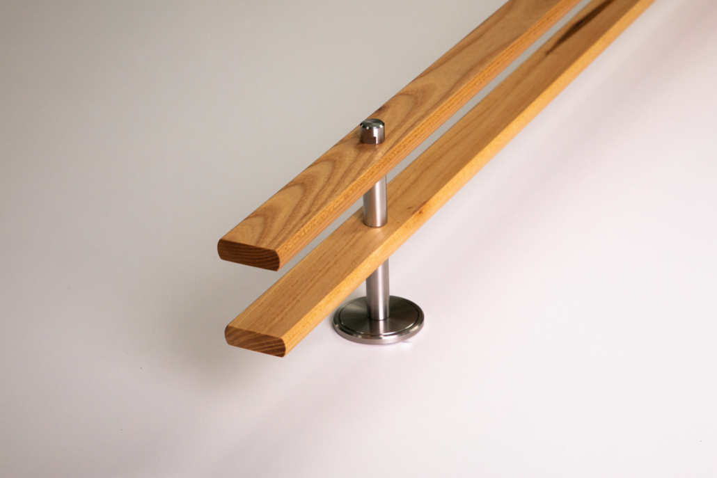 Maßgefertigte zweiläufige Vorhangstange aus Massivholz ca. 37 x 12 mm in Ulme (Rüster), oben und unten gerundet mit Radius 10 mm, Oberfläche geschliffen sowie naturgeölt.
